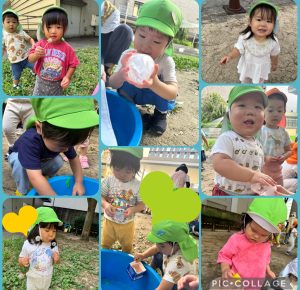 今日は、中庭で遊びました。 久しぶりに靴を履いて保育士とかけっこをして走り回ったりたんぽぽの花を見つけて「ぽぽー」と教えてくれたりする子ども達♡ また、もも組さんちゅうりっぷ組さんと一緒に氷に触れて楽しみました。 冷たいけどしっかり両手を使いきらきら光る氷を手にして「つめたーい」とにこにこでした。